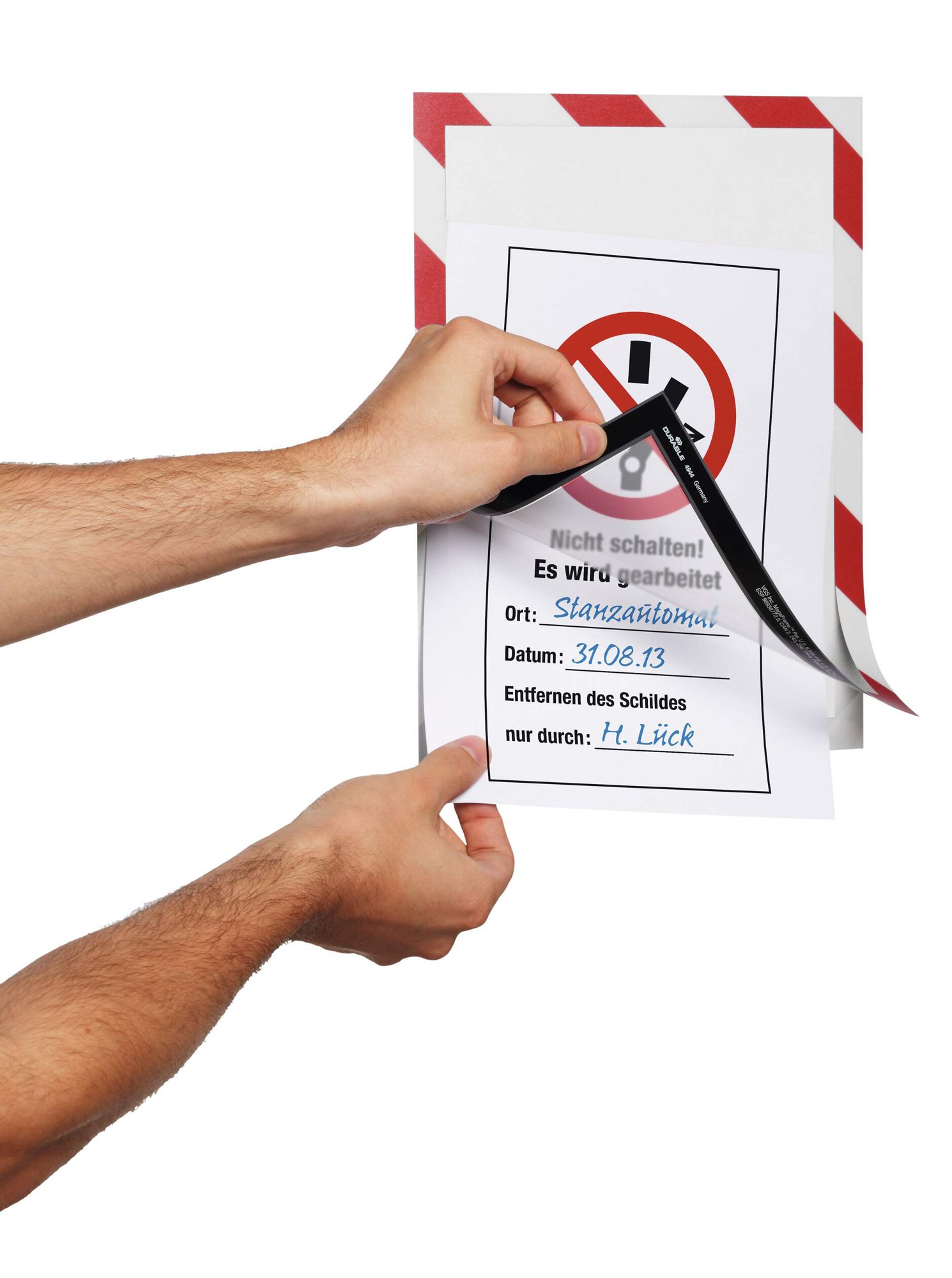 Durable DURAFRAME SECURITY Self-Adhesive Safety Sign & Document Holder with Magnetic Frame A4 Red/White (Pack 2) - 4944132