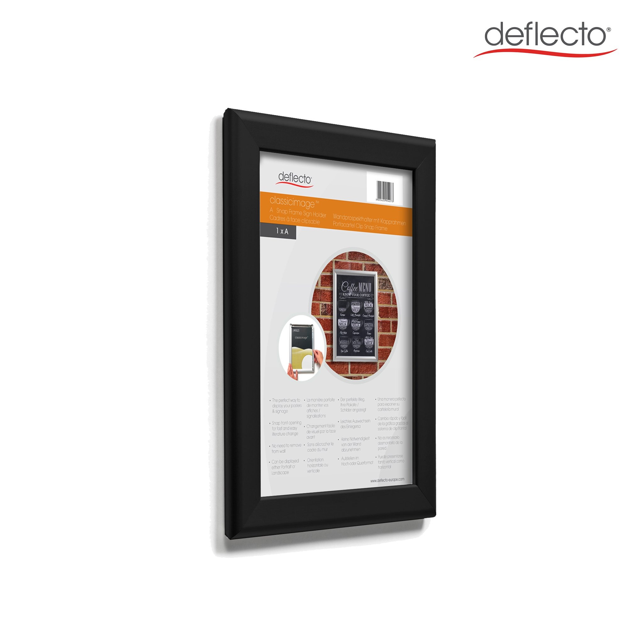 Deflecto A4 Wall Mounted 25mm Aluminium Snap Frame Literature Display Sign Holder Black - SFA4B